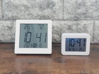 今回はダイソーのデジタル置時計について紹介します。 デジタル温湿度計(550円)とデジタル時計(330円)という二つの商品を紹介しますが、どちらも無印良品似のシンプルなデザインでいい感じです。