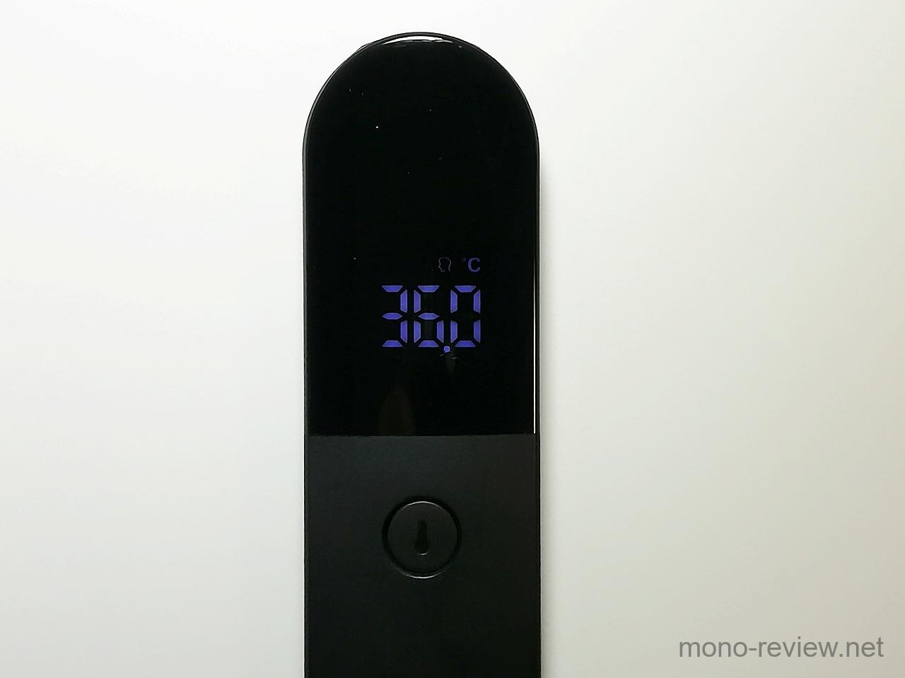 電源オフの状態でボタンを長押しすると摂氏と華氏の切り替え、電源オンの状態で長押しすると体温と室温の計測の切り替えもできます。